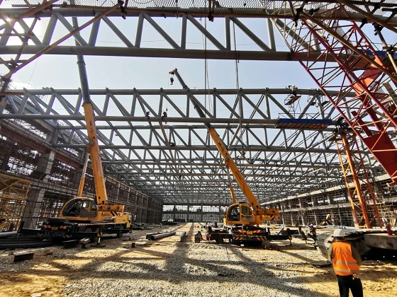 晋江市国际会展中心A1展馆钢桁架封顶更新时间:2019-01-21经过25天的风雨无歇、近百名工友的日夜奋战,晋江国际会展中心A1展馆于1月19日率先完成钢结构主桁架吊装,比原计划提前3天。 晋江国际会展中心主展馆采用钢结构桁架梁,本次钢桁架封顶的A1展馆共有14榀钢桁架,平均... -
