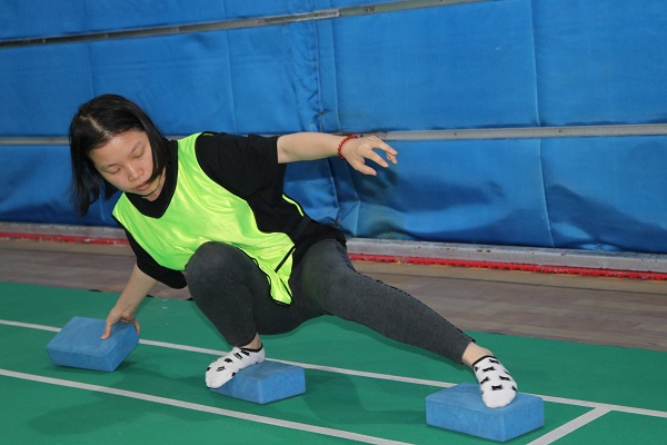 这个项目其实包含了好几个小项:巧运乒乓球、指压板跳绳、袋鼠跳、平板支撑、摸石头过河、踢毽子、背人过河。各队很快就冷静下来,对所有小项和团队成员的身材、特长进行了询问、比照、练习,并充分考虑了每个成员的优劣势。很快,比赛开始了,每个人都在最适合或者团队最需要的项目上拼命做到最好,为了集体荣誉而战。想想在工作中何尝不是如此,首先要分析形势,制定切实可行的方案,然后通力合作,如果大家各存异心、各自为战、缺乏交流,那样只会与成功背道而驰。