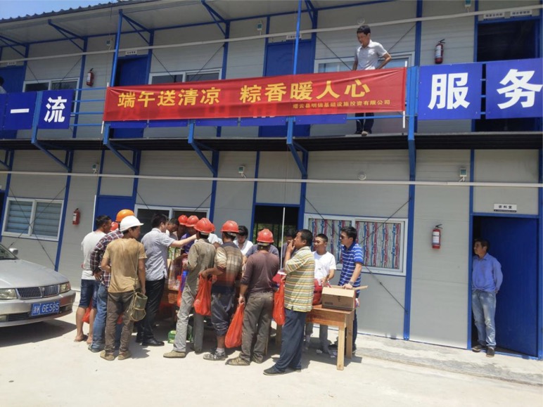酷夏无情,人间有爱。缙云县养老院及配套工程项目施工作业人员不辞辛苦,坚守在作业岗位,他们每天在高温下作业,保障项目顺利推进。6月15日,借端午佳节,指挥部组织开展“端午送清凉,棕香暖人心”活动,为一线劳动者送上毛巾、粽子、绿豆粥等生活用品,为他们送上一份来自博彩的祝福,让他们在炎炎夏日感受到一份清凉,进一步增强了员工对博彩的认同感、归属感。