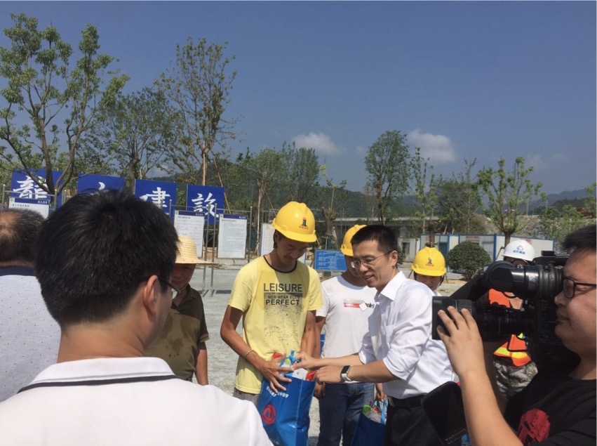 今天上午,建德市市长朱欢、副市长张早林、政协副主席叶志高等一行到建德东站项目现场慰问一线施工人员,给工人发放防暑降温用品并亲切询问他们生活情况,叮嘱在高温作业下注意身体健康;市长朱欢要求项目施工单位注意高温生产安全。