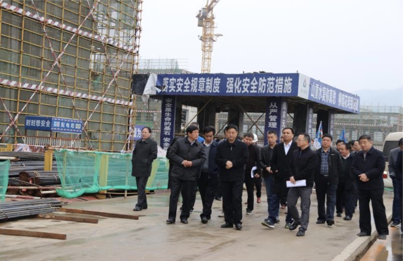 我司项目建设指挥部总指挥吴宝忠向李区长一行汇报了项目建设情况及现存问题。李区长一行对项目现场进行了全方位的检查指导,提出了要求,对项目推进过程中存在投资超概算、气象局办公楼搬迁、剩余回民墓迁移等问题要求相关职能部门按时间节点予以解决。