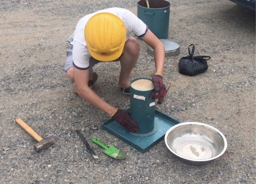 在工地现场,检测人员正在对K4+500-K6+000段路基进行弯沉、压实度检测。