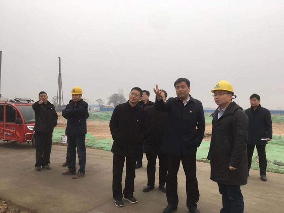吕市长一行在博彩 余军秋总指挥的陪同下现场察看工地施工,了解桩基施工进展。