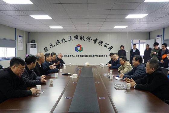 各参建单位就体育中心PPP项目基本概况、设计功能、投资计划、工程进度、质量管理等全方位地向吴市长一行作详细汇报。