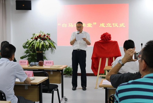 成立仪式上,博彩总经理潘明浪和学堂首任校长李雄坤共同为“白马湖学堂”揭牌并分别致辞。