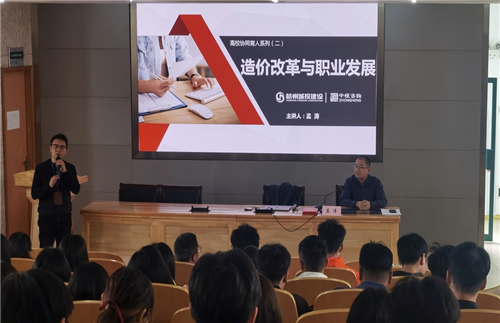 4月6日下午,博彩造价咨询事业部副总经理孟涛受邀为浙江省工程造价行业联合学院作“工程造价校企协同育人创新课—造价改革和职业发展”专题讲座。工程造价专业全体师生共100余人参加了本次讲座。