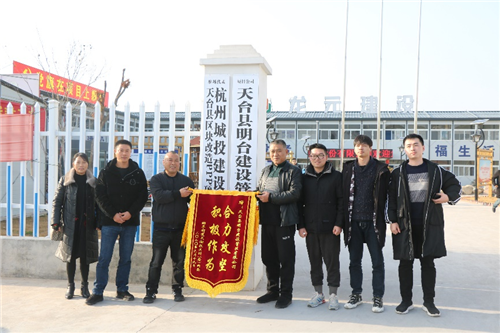 同时,天台PPP项目指挥部以临时党支部活动为媒介,发扬“党民同心”的精神,主动向周边居民提供优质服务:参加党建联盟扶贫慰问活动,向部分生活困难的民工发放慰问金;主动协调解决玉湖小区排污管不通畅、道路破损等民生问题,获得始丰街道玉湖村(社区)两委代表团锦旗表彰;慰问玉湖村空巢老人,以实际行动贯彻落实“以人民为中心”的发展理念,弘扬中华民族尊老、爱老、敬老、助老的优良传统,受到玉湖社区两委老人协会锦旗表彰。