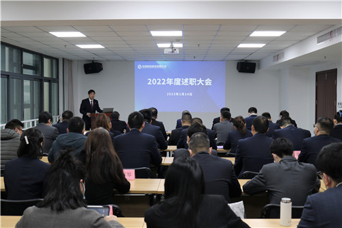 1月14日上午,博彩召开2022年度工作述职大会,博彩中层正职以上干部共计16人进行述职汇报。