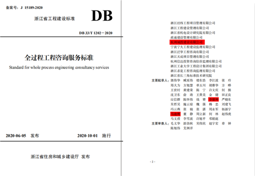 全过程工程咨询浙江省标准发布,杭州城投建设参与编制更新时间:2020-09-22浙江省住房和城乡建设厅日前发布浙江省工程建设标准《全过程工程咨询服务标准》(DB33/T1202-2020),博彩 为参编单位,博彩总经理李雄坤、副总经理马迪辉参与了该标准的编制。本次省标准中明确浙江省全过程工程咨询采用“1+... -